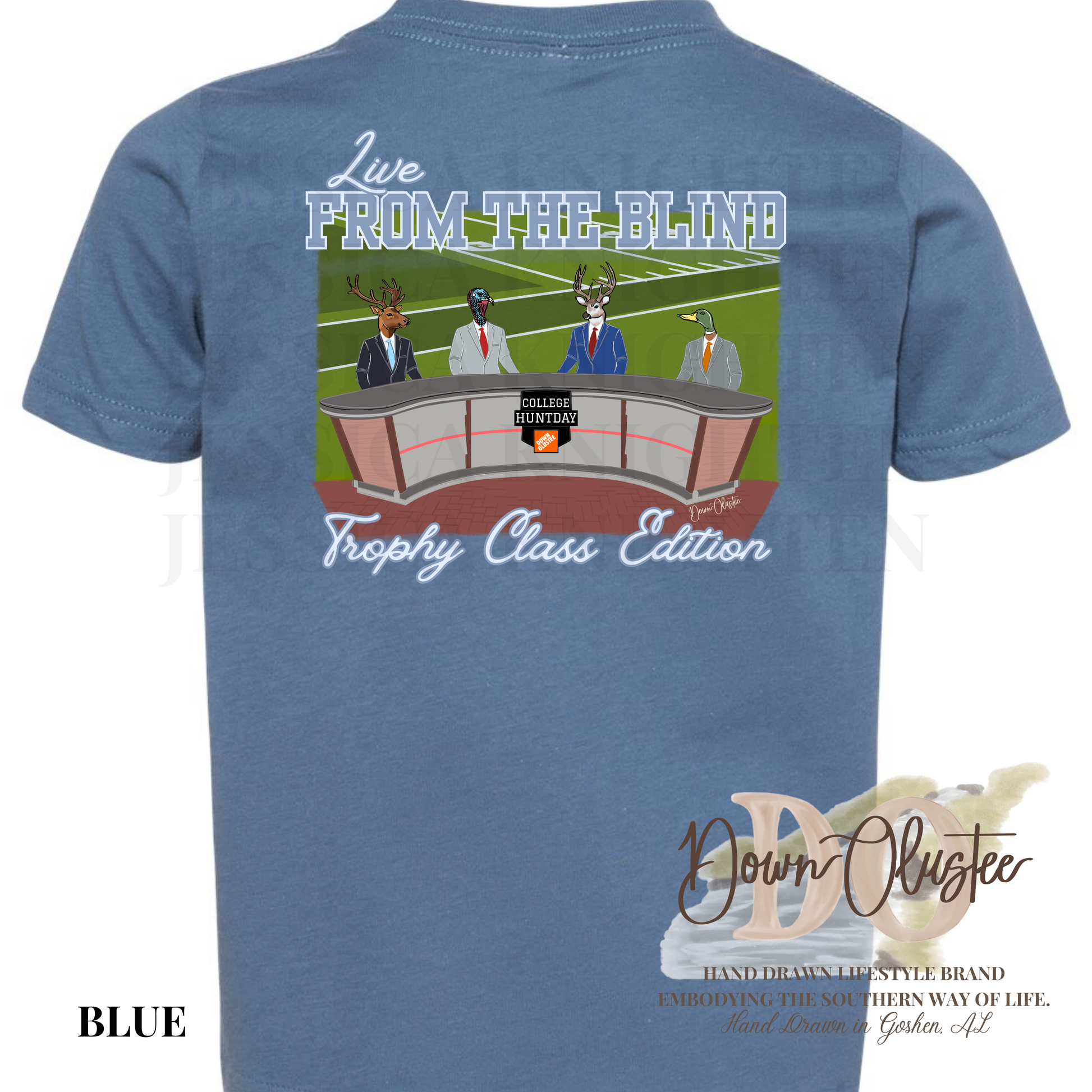 * Please note that due to manufactures stock the design may be printed on a different color tee. We ensure that our designs are always tastefully made, so the tee used will be as close to the color pictured or the best color that will work with the design. - Each design is hand drawn and exclusive to Down Olustee